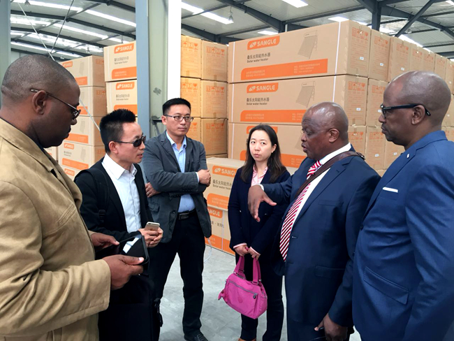 At present, the Republic of South Africa pays more attention to people's livelihood, and the demand for solar water heaters is increasing with their days, which further strengthens the confidence of South African customers in the cause of solar energy. The factory director Mr. Zhao Zhongqiang made a detailed introduction about production, R&D, quality inspection, development and production scale of new products for customers, which made them full of praise.