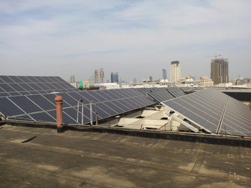 沈陽中鐵九局42kWp并網(wǎng)分布式電站工程項目采用高效多晶硅光伏組件180塊,總裝機容量為44.28kWp,系統(tǒng)年輸出電量約為53000 kWh。此項目在100多米的高空中與建筑完美結合,美觀、大方、實用。