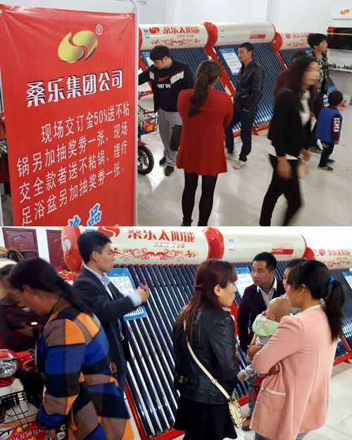 活動(dòng)當(dāng)天,公司人員親臨現(xiàn)場(chǎng)進(jìn)行指導(dǎo),對(duì)桑樂(lè)太陽(yáng)能熱水器,凈水機(jī)產(chǎn)品知識(shí)進(jìn)行視頻播放和細(xì)致講解。當(dāng)主持人宣布產(chǎn)品優(yōu)惠活動(dòng)開(kāi)始后,所有用戶(hù)都交現(xiàn)金購(gòu)買(mǎi)自己所需的產(chǎn)品,活動(dòng)現(xiàn)場(chǎng)達(dá)到了銷(xiāo)售高潮。