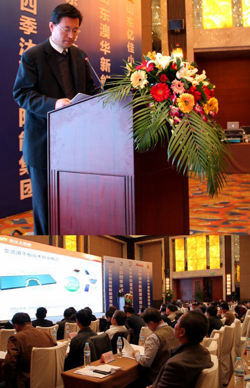 會(huì)上,桑樂(lè)集團(tuán)光熱技術(shù)部經(jīng)理馬兵做了《桑樂(lè)全流道平板技太陽(yáng)能技術(shù)優(yōu)化在高層建筑中的應(yīng)用》。桑樂(lè)集團(tuán)投入巨資引進(jìn)日本先進(jìn)的焊接生產(chǎn)線,采用不銹鋼為板芯基材,自主設(shè)計(jì)了全流道整板虹吸流道,突破國(guó)內(nèi)現(xiàn)有平板集熱器技術(shù),全新開(kāi)發(fā)了一種新型的全流道平板太陽(yáng)能集熱器。成為國(guó)內(nèi)首家生產(chǎn)制造全流道不銹鋼平板太陽(yáng)能集熱器的廠家。目前已經(jīng)獲得33項(xiàng)專利,其中發(fā)明專利13項(xiàng),是我們國(guó)家真正擁有自主知識(shí)產(chǎn)權(quán)的產(chǎn)品。