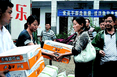 日,耿剛、班立杰、劉芹每率數(shù)十名員工與記者隨數(shù)臺(tái)裝滿十萬(wàn)救災(zāi)物資的專車從湖南基地出發(fā),驅(qū)車直達(dá)岳陽(yáng)重災(zāi)區(qū)岳陽(yáng)縣相思鄉(xiāng)、臨湘縣詹橋?yàn)?zāi)區(qū)賑災(zāi)。