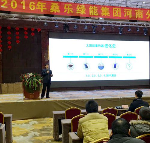 河南公司副總經(jīng)理陳宇對公司2016年新品與會展示。桑樂堅持技術(shù)創(chuàng)新,從用戶體驗入手的設(shè)計思路將桑樂綠能新品進(jìn)行了新的詮釋,并結(jié)合市場機(jī)遇提出了市場發(fā)展的新思路。