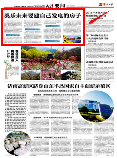 在光伏領域,桑樂已擁有十余年技術積累,并在全國推廣超百兆的分布式光伏電站。目前又計劃引進美國第三代有機電池薄膜產品, 與國內第二代光伏產品相比,對環(huán)境無毒無害,推廣價值巨大。此外,桑樂憑借掌握的四十多項專利成果,為打造“綠能全空間”生態(tài)環(huán)境,提供整體的支持。山東省減災中心泉城公園項目被稱為山東省第一批超低能耗示范建筑,就是綜合運用了太陽能空調、空氣源熱泵 、光伏電池、太陽能集熱器等新能源最新技術,也就是濟南人口中的“被動房”。