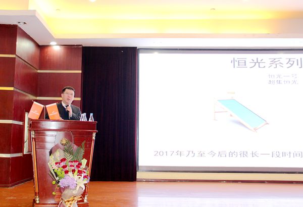 大會首先由董事長王雪廣做主旨發(fā)言。近兩年來,我國新能源產(chǎn)業(yè)進入全新階段,市場瞬息萬變,市場對新能源產(chǎn)品及其服務(wù)的要求日益提高,多元化發(fā)展,跨界發(fā)展已然成為新能源業(yè)態(tài)新趨勢。桑樂銷售團隊積極轉(zhuǎn)變思想,創(chuàng)新思維,立志以優(yōu)異的市場份額推動公司完成由“太陽能產(chǎn)業(yè)”到“新能源產(chǎn)業(yè)”的戰(zhàn)略轉(zhuǎn)型。桑樂要適應(yīng)新形式的變化,光熱和光伏同步發(fā)展,全力打造全國新能源研發(fā)平臺,打造現(xiàn)代化具有高效率的企業(yè)。董事長強調(diào),“變化是時代的主旋律”,2016年桑樂發(fā)生了幾個方面的變化,一是企業(yè)形象,品牌形象有了很大提升;二是桑樂的“陽光、空氣、水”概念,企業(yè)的戰(zhàn)略轉(zhuǎn)型,產(chǎn)品結(jié)構(gòu)調(diào)整。從單一產(chǎn)品發(fā)展到多元化產(chǎn)品,主推了太陽能、光伏家庭電站、凈水機、空氣能產(chǎn)品,推出恒光一號,超級恒光系列產(chǎn)品;三是銷售工作半年多來有了不錯的發(fā)展,“黃山行”加強了團隊建設(shè),下一步銷售的核心是加強招商工作,改變銷售方式。