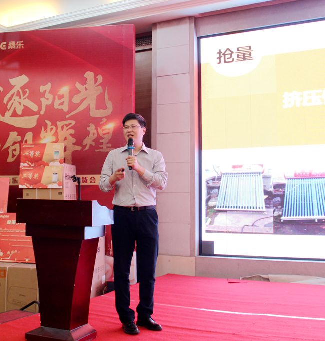 市場部部長國升進行了《以舊換新選桑樂》啟動宣講,桑樂集團“紅五月”以舊換新正式啟航。桑樂作為全國知名太陽能品牌、山東省名牌,品牌知名度美譽度高,家喻戶曉,更有知名央視主持人倪萍傾情代言,值此桑樂太陽能30年發(fā)展之際,產(chǎn)品配合中國風的產(chǎn)品設(shè)計,今年新推出的倪萍推薦款、狗年定制版的新款熱水器,贏得了市場好評。2018年集團布局全國戰(zhàn)略,穩(wěn)扎穩(wěn)打,集中突破,將“以舊換新”進行到底。太陽能以舊換新,就選30年的桑樂! 選30年的大品牌,用30年的好產(chǎn)品,交30年的好朋友!