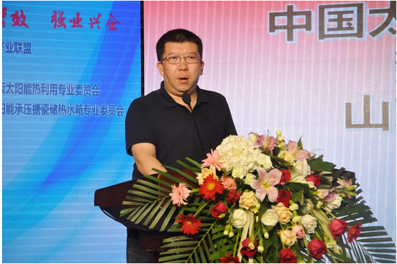 平板太陽(yáng)能熱利用專業(yè)委員會(huì)主任單位、山東桑樂太陽(yáng)能有限公司副總經(jīng)理馮磊致辭