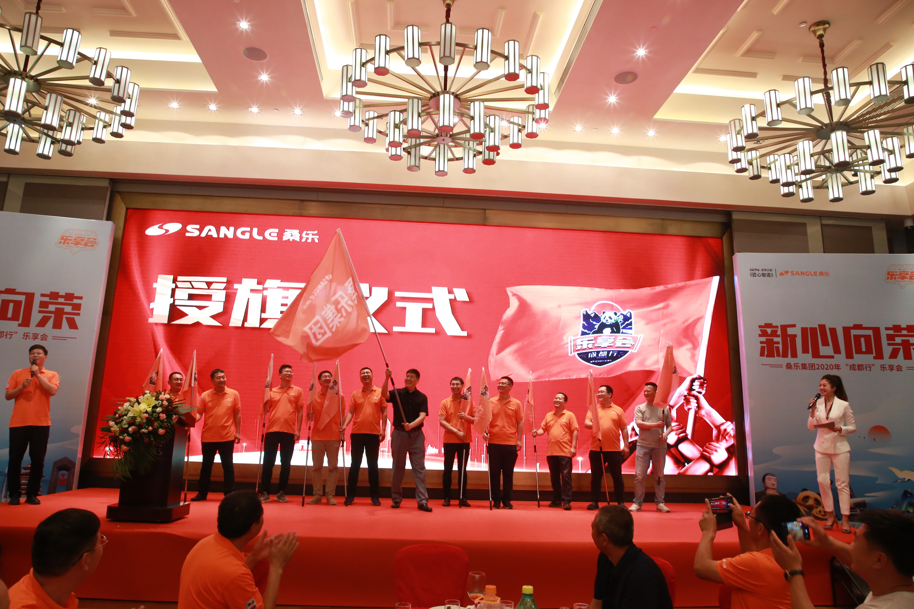 6月29日,為迎接來自各地經(jīng)銷商的到來,集團精心準備了一場盛大晚宴,大家在觥籌交錯,珍饈佳肴中,氤氳著久別重逢的喜慶氛圍。此外,現(xiàn)場還舉行了授旗儀式,董事長王雪廣親自授旗,經(jīng)銷商代表手握旗幟,在臺上揮旗飄揚,而這每一面旗幟都代表著桑樂不止所見的未來。