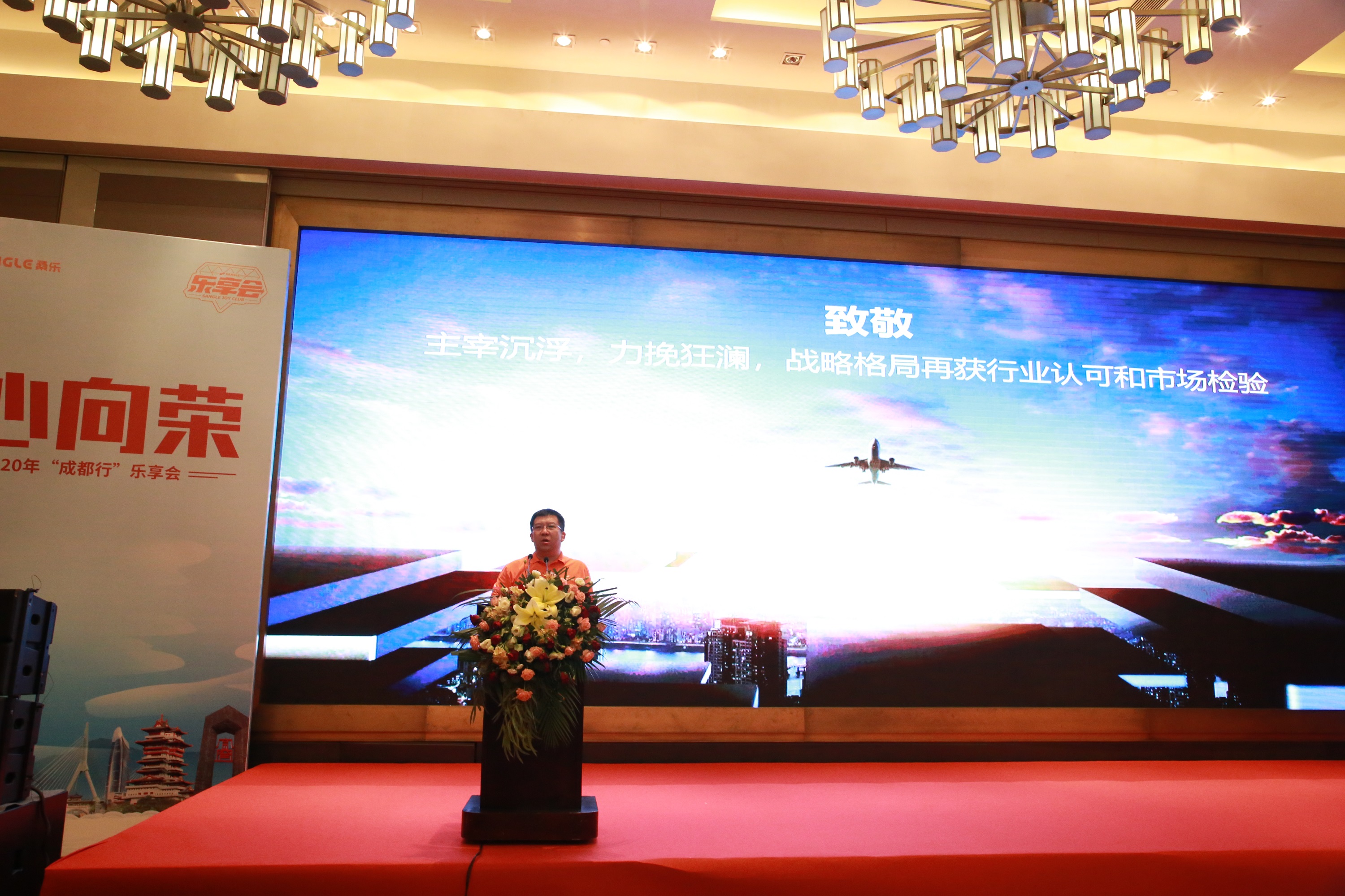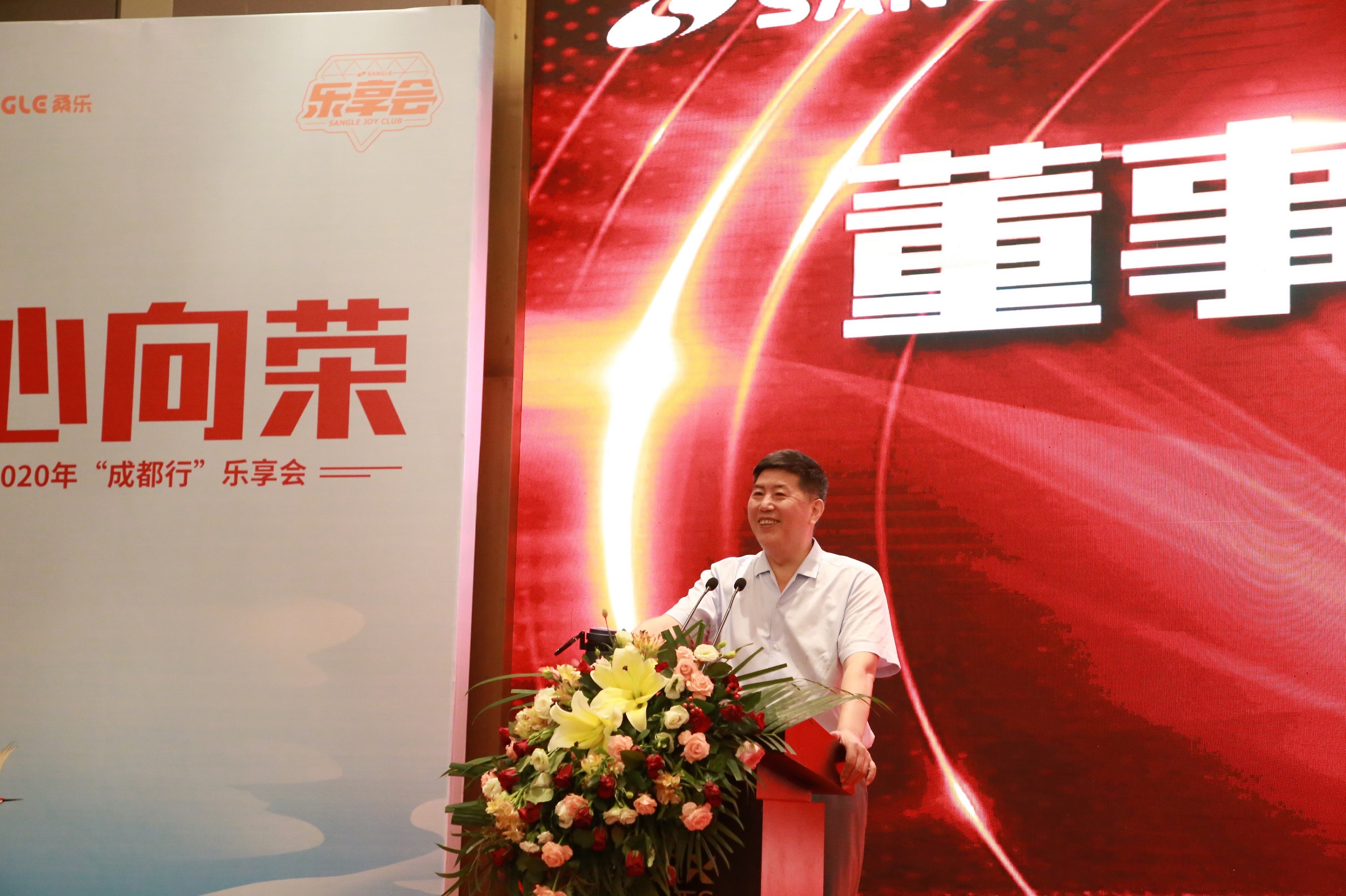 緊接著,作為會議東道主、集團首席經(jīng)濟師郭偉郭總做了歡迎致辭,他對蒞臨本次會議的各位桑樂家人們表示最誠摯的歡迎,并邀請全體參會經(jīng)銷商于會后參觀其成都桑樂官方旗艦店。
