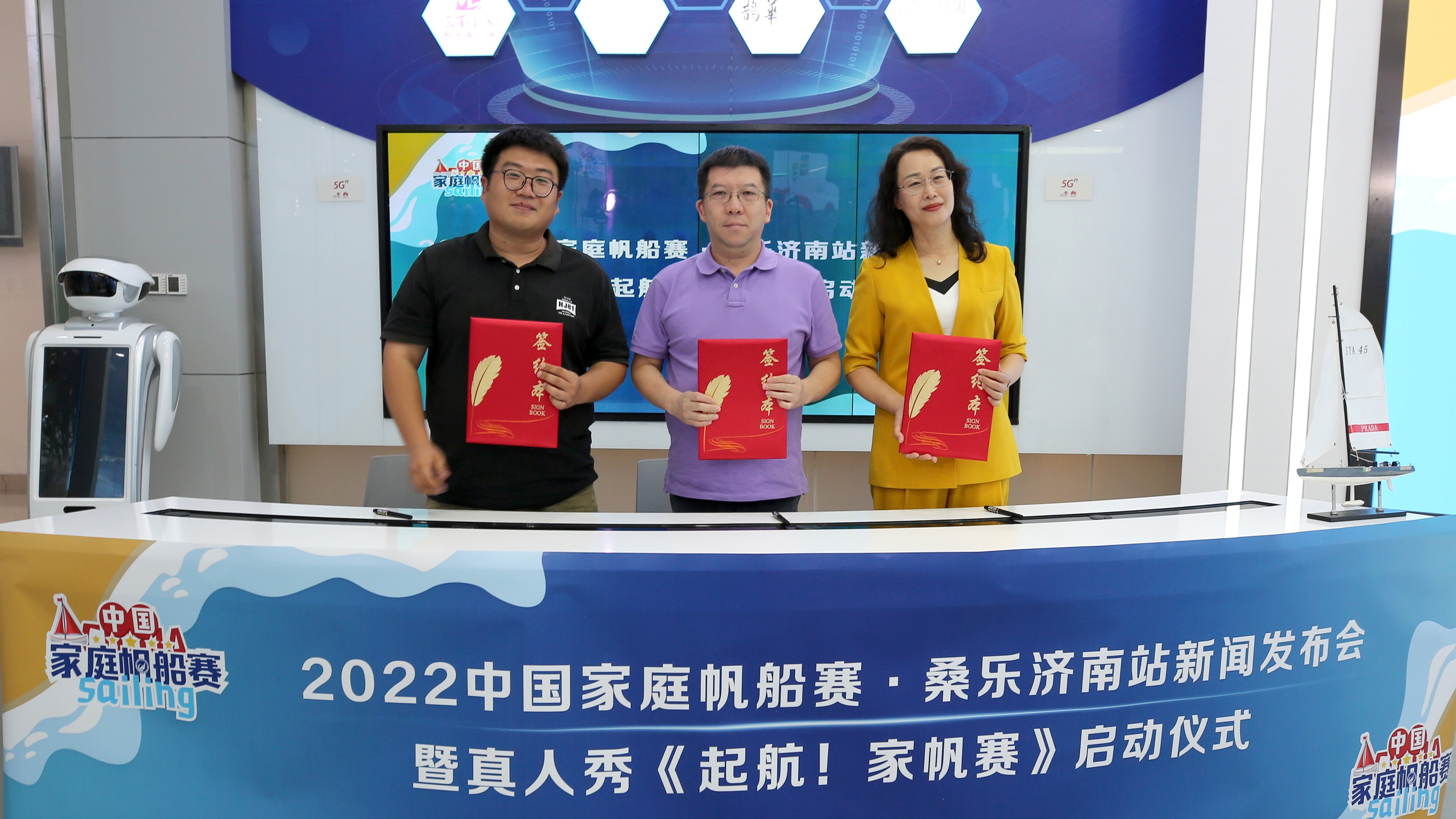 儀式現(xiàn)場,集團(tuán)領(lǐng)導(dǎo)與濟(jì)南市帆船帆板運(yùn)動協(xié)會會長劉蕾、山東亞斯體育產(chǎn)業(yè)負(fù)責(zé)人楊沛寧一同進(jìn)行了賽事冠名單位的簽約。濟(jì)南文旅體育頻道,將在家帆賽舉辦期間發(fā)揮主流媒體優(yōu)勢,利用全媒體傳播手段,打造濟(jì)南帆船賽事IP。
